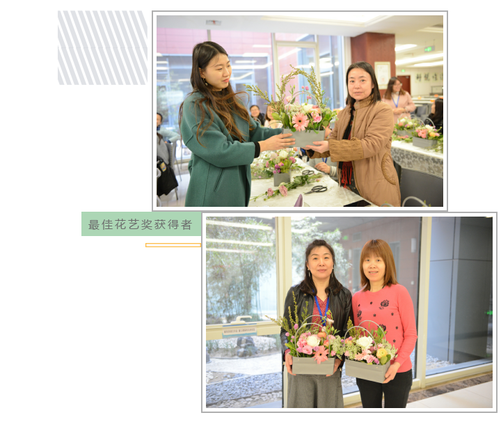 一個(gè)個(gè)作品新鮮出爐后,花藝?yán)蠋熤鹨粚?duì)大家的作品進(jìn)行點(diǎn)評(píng)和指導(dǎo),根據(jù)作品的創(chuàng)新性與精美行,評(píng)選出三個(gè)“最佳花藝”獎(jiǎng)。