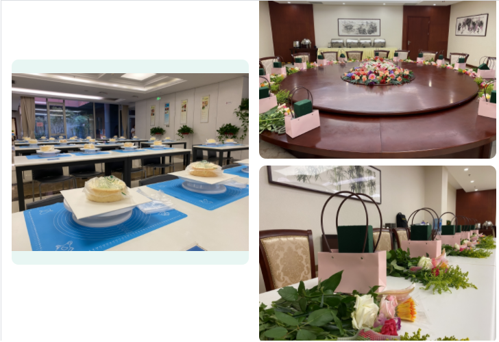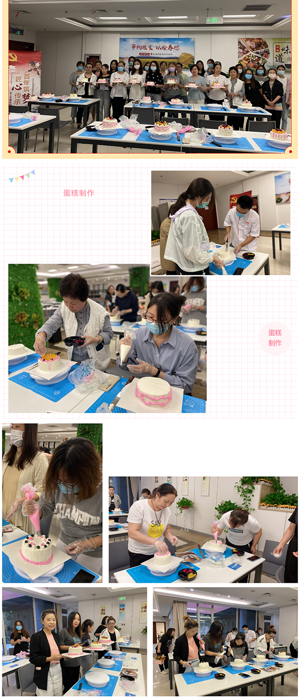 蛋糕制作,在經(jīng)驗豐富烘焙老師的帶領下,分發(fā)食材,參與者在老師的教導下學習制作和烘焙。在活動中不時出現(xiàn)員工提問和老師互動的場景,如詳細的詢問老師每一個步驟應該怎么操作,活動現(xiàn)場氛圍溫馨、熱鬧,在烘焙老師的指導下,大家一起動手抹奶油、裱花、添加水果……制作出了一個個精美的蛋糕。