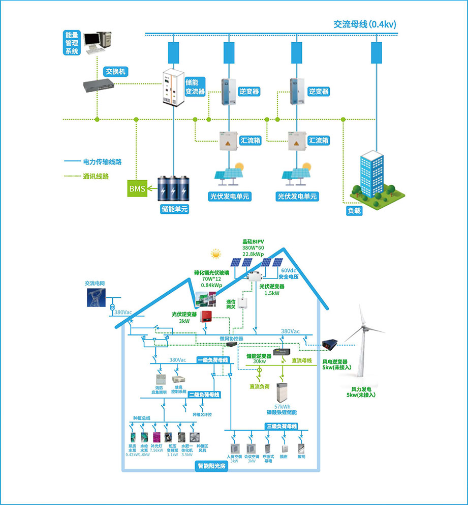 用戶側(cè)儲能/光儲充微網(wǎng)系統(tǒng),通過靈活接線,能夠?qū)δ?、充電樁、光伏、等單元與微電網(wǎng)內(nèi)各負(fù)荷類型進行有機組合,構(gòu)建各類綜合能源服務(wù)角色,模擬各種區(qū)域能源業(yè)務(wù)場景,實現(xiàn)終端用戶在能源業(yè)務(wù)場景中的緊密互動。通過智慧供能控制平臺,實現(xiàn)儲能削峰填谷功能與光伏發(fā)電結(jié)合,進行峰谷套利,提升可再生能源消納水平。通過電動汽車充電樁的應(yīng)用以及可控負(fù)荷的靈活調(diào)度,提升終端電氣化利用效率,提升用能水平,降低用能成本??尚纬捎刑厣?、有活力的、大眾參與的綜合能源服務(wù)創(chuàng)新運營模式,催生具有盈利空間的新興能源消費生態(tài)體系,引領(lǐng)綜合能源服務(wù)發(fā)展方向。