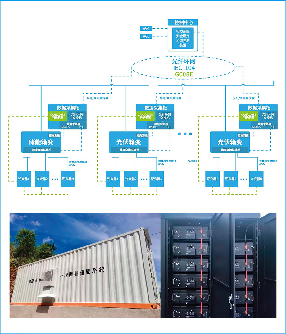 利用該系統(tǒng),單機或加裝獨立控制裝置,新能源發(fā)電廠可完成有功-頻率下垂特性控制,使其在并網(wǎng)點具備參與電網(wǎng)一次調頻響應能力??砂凑招履茉唇涣鱾阮~定功率的10%~20%,儲能時長按照1h~2h進行配置。本系統(tǒng)可控制分布式無功輸出,能滿足在30ms對AVC/AGC調度指令的響應,替代集中式的SVG設備。